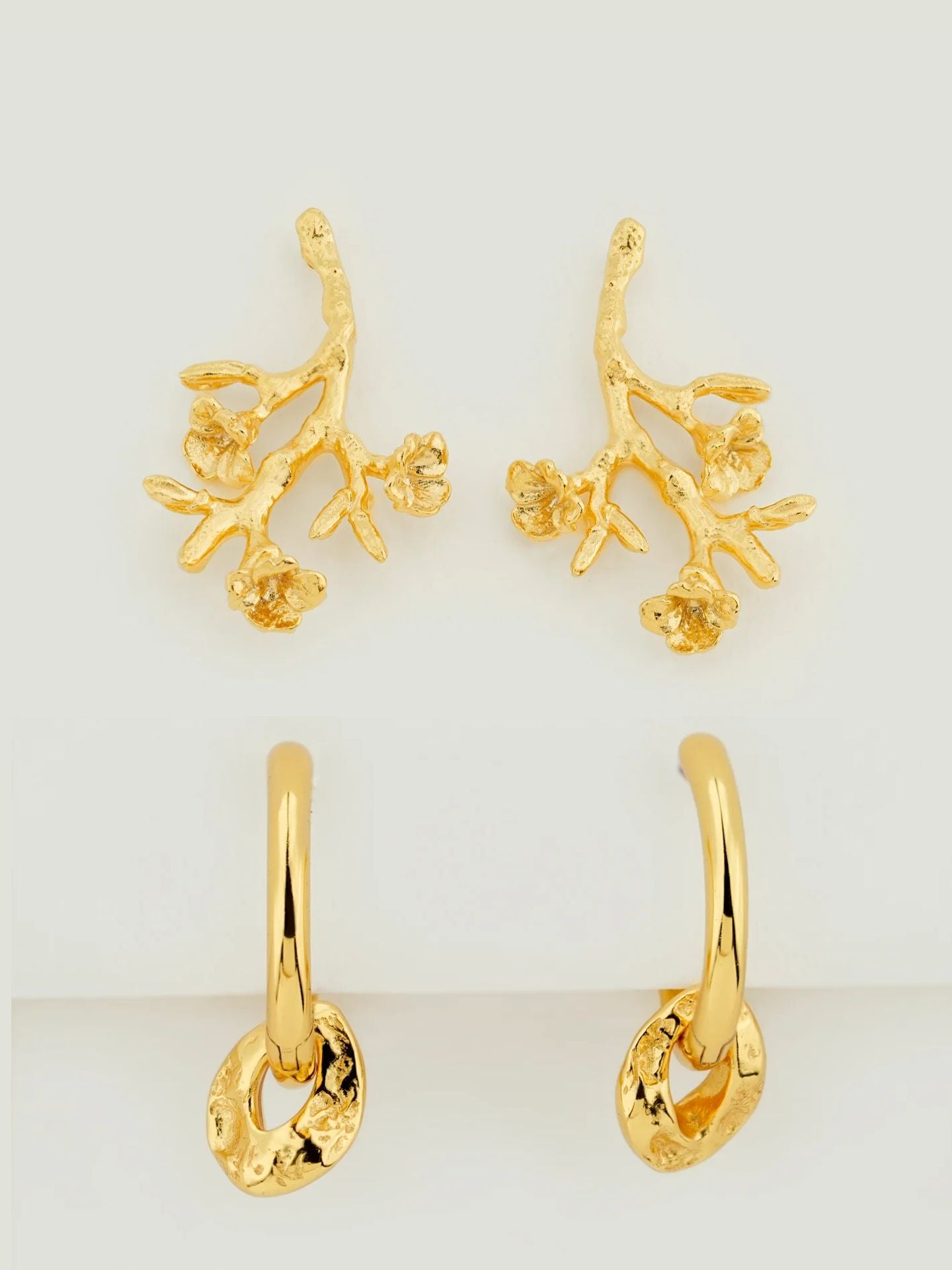 Blossom Vine Drop & Double Hoop Earring Stack